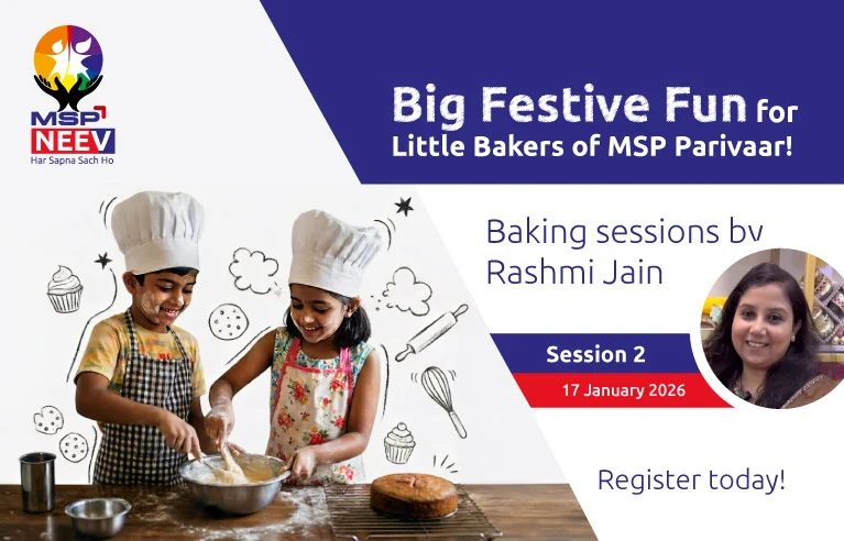 Join us for a fun-filled festive journey with MSP Neev’s Easy Baking Sessions. Designed exclusively for the children of MSP Parivaar, this initiative is an extension of the MSP Bandhan program and focuses on nurturing creativity, building bonds, and bringing families together through joyful, hands-on learning.
